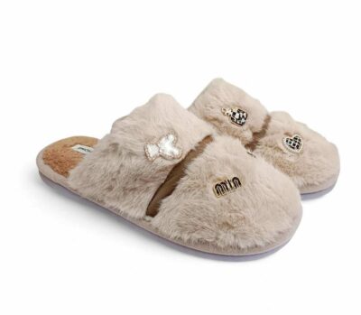Jomix Γυναικεία Χειμερινή Παντόφλα Με Οικολογική Γούνα και Φιογκάκι Beige